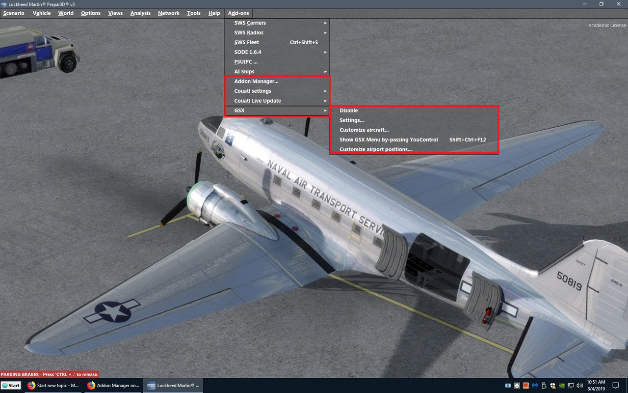 to activate. When the addons "disappeared" from P3D, there wasn't any "visible" error message, just the stark fact that when I went to access the GSX