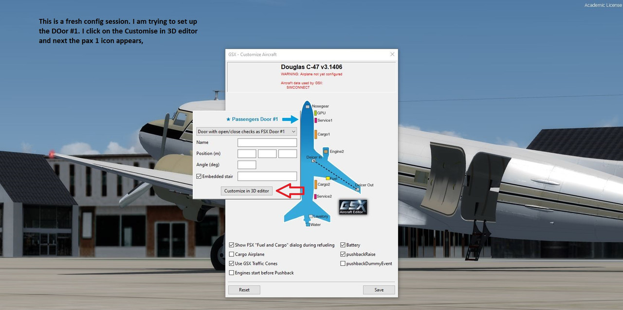Okay I am going to start over with a play by play of what I did to configure GSX to use the ladder on this plane: