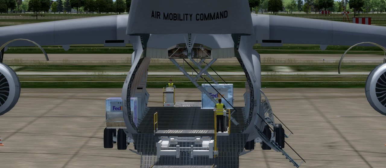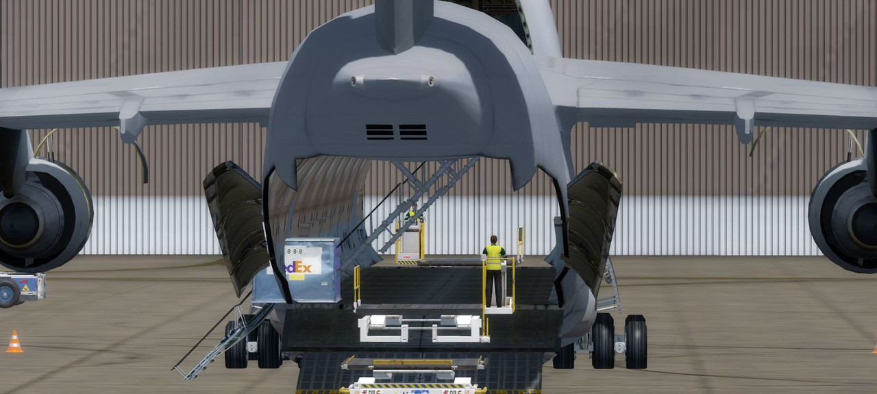 for the C-5 set up for cargo unloaders. Both back and front cargo containers seem to appear from the outside of the fuselage then slide inwards towards the