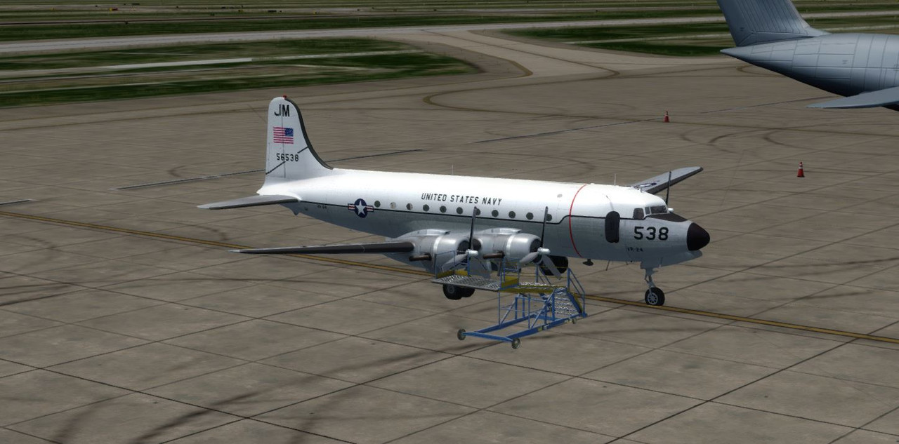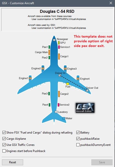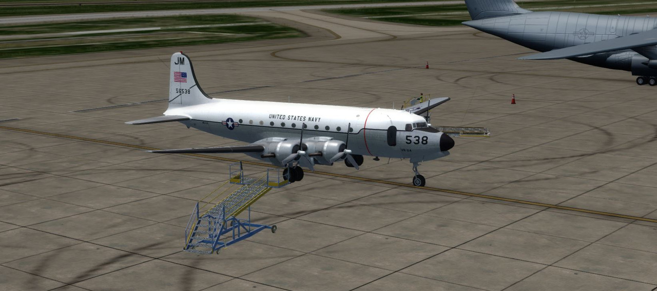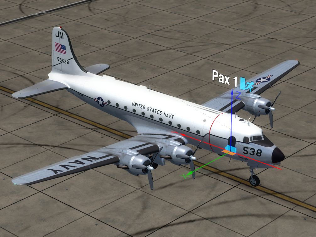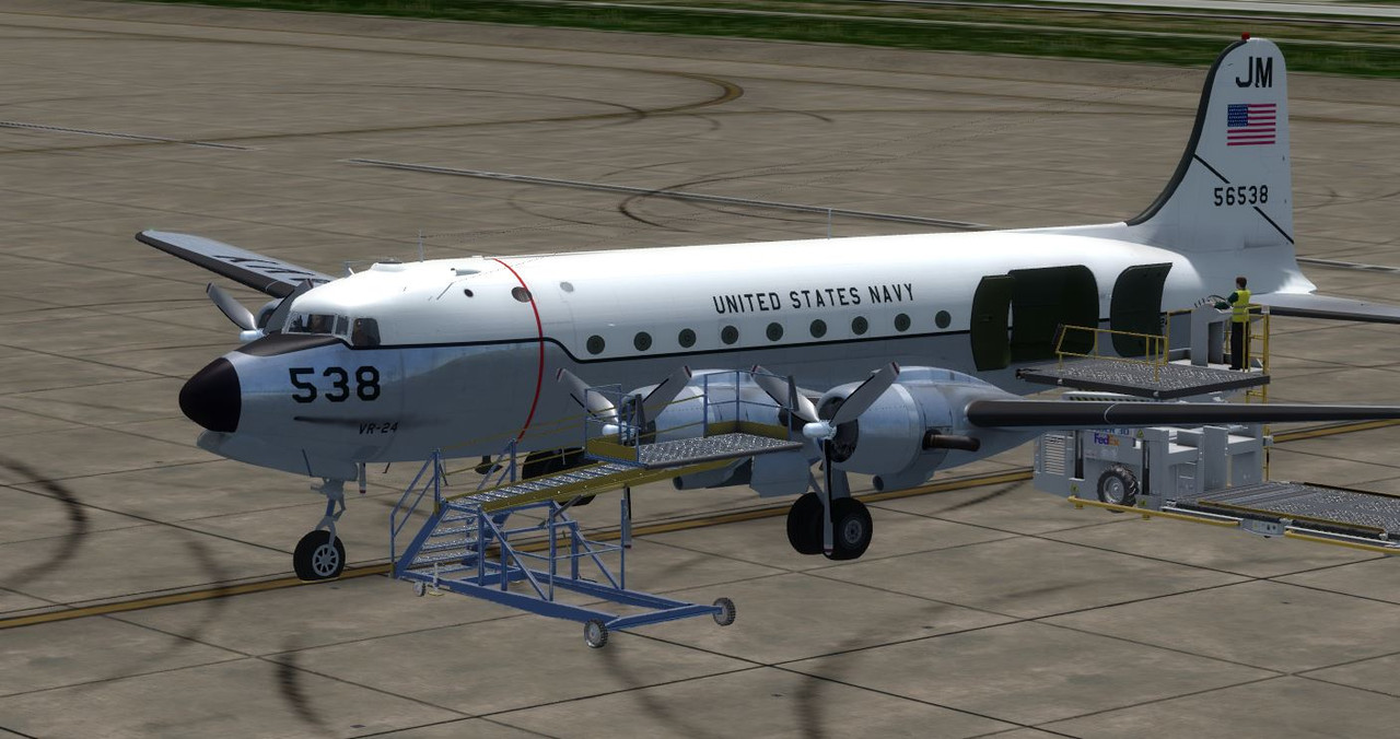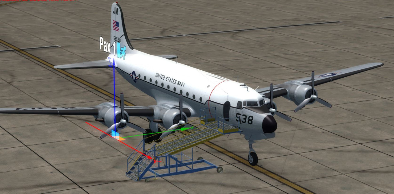 In P3d V4.5 I am using Flight Replicas DC-4/C54 Skymaster. This aircraft has a right side door for pax/crew use (entry/exit)