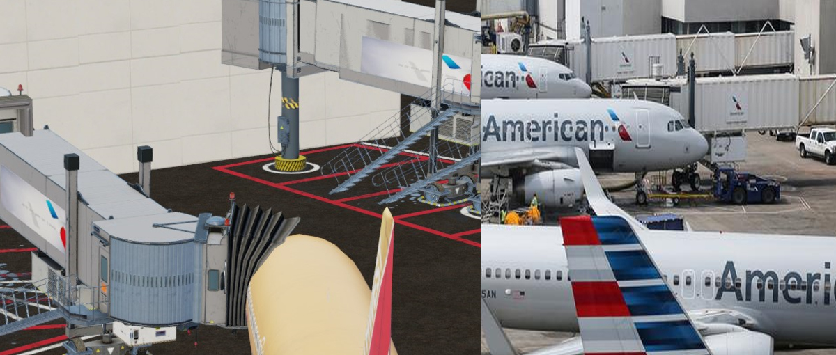 Even so, this one is more similar that United and Southwest which look really nothing at all like real life on the GSX bridges which is why I used them as examples in my first post. I am asking why if you bother to create an American, United, Southwest etc logo at all do you not look at an actual picture of the standard jetway logos and then make THAT logo (but in your required ratio) rather than making a fake fantasy logo that looks nothing like any bridge used by that carrier? Becuase now we are more or less stuck with the stock options, and I can live with a fake ratio, but not a totally fake design that is my point man lol.