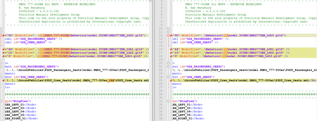 There is a "PMDG773ER_EX.xml" in the main aircraft (777) Behaviors folder and also in the individual liveries ones too. The main aircraft folder has the correct reference to the gltf model files so that is the reason, why we have to do a manual correction.