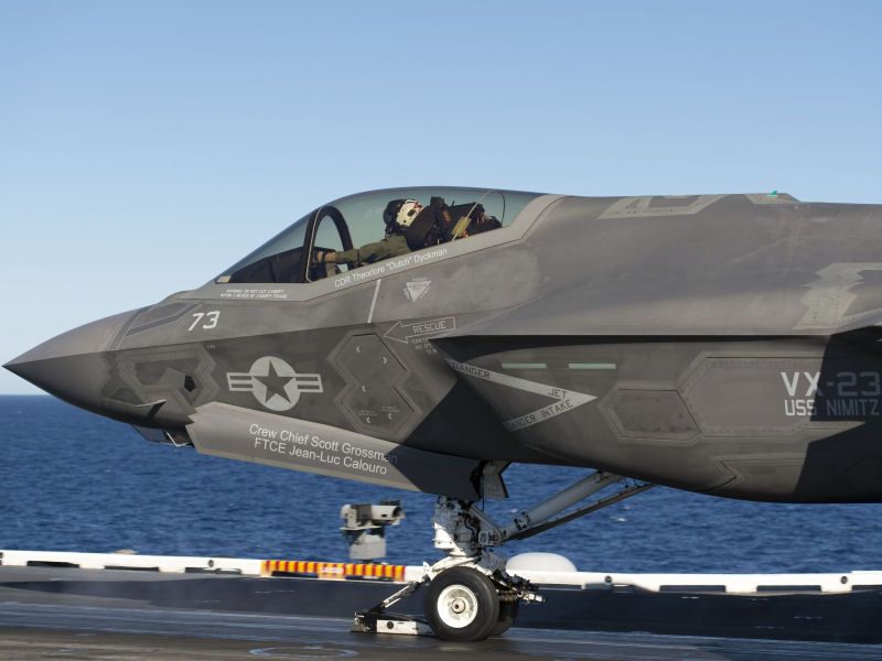 As mentioned I saw last week or so the photos of the F-35C launching from USS Nimitz with three photos showing the pilots from VX-23 with BOTH hands off the controls clutching the twin towel racks. Then there was the video and my puzzlement about what I saw with the VX-23 Hornet pilot showing his left hand OFF the throttle clutching the left towel rail. You can see the quoted answers from former Hornet/Super Hornet pilots above so I left it at that. It is possible that VX-23 test pilots use different techniques for test purposes. However they have that opportunity ashore on the catapults at Lakehurst and Pax River. Anyway here are some F-35C zoomed catapult/pilot hands photos: (some poor quality because of the zoom factor) Comments from a good source suggest that this 'look no hands' technique will be standard on the F-35C. There is no direct connection between the throttle and engine - everything is controlled by computer software. Like the method in the Super Hornet - there is a variable afterburner in both the Super and the F-35C which will only allow approx. 125% at the start whilst opening up to full 150% (full A/B) off the catapult. We see that dramatically during the first catapult at night of the F-35C below: [steam around the lights near JBD is not a fire]