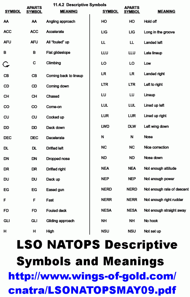 From 01 May 2009 LSO NATOPS manual (the latest one I have and I think available online) has these notes about symbology: