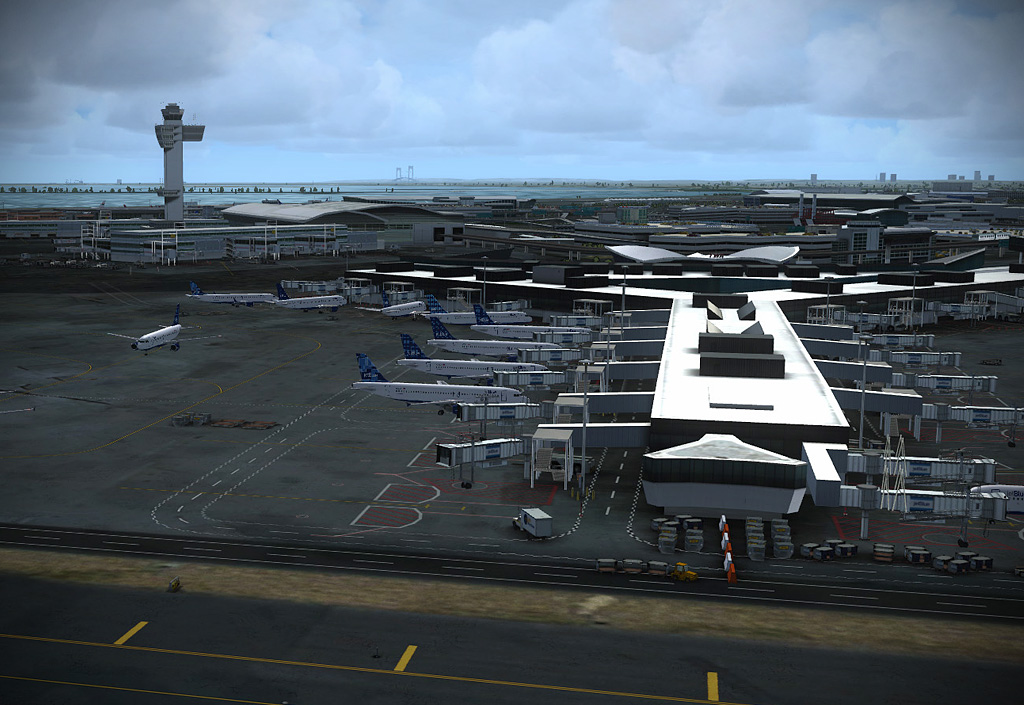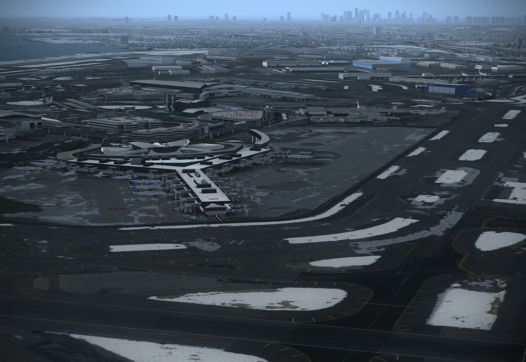 New York JFK Airport V2 ( see the Wikipedia article here ) is a scenery developed for Microsoft Flight Simulator X (FSX) and Lochkeed Martin Prepar3D. It's has been created with great attention to visual quality and performance, using the latest available programming techniques.