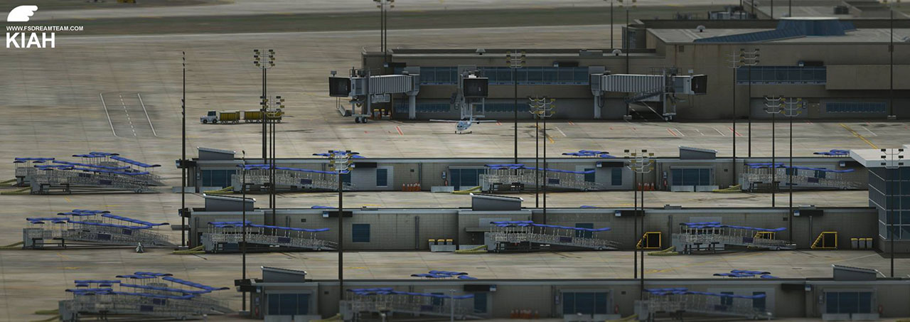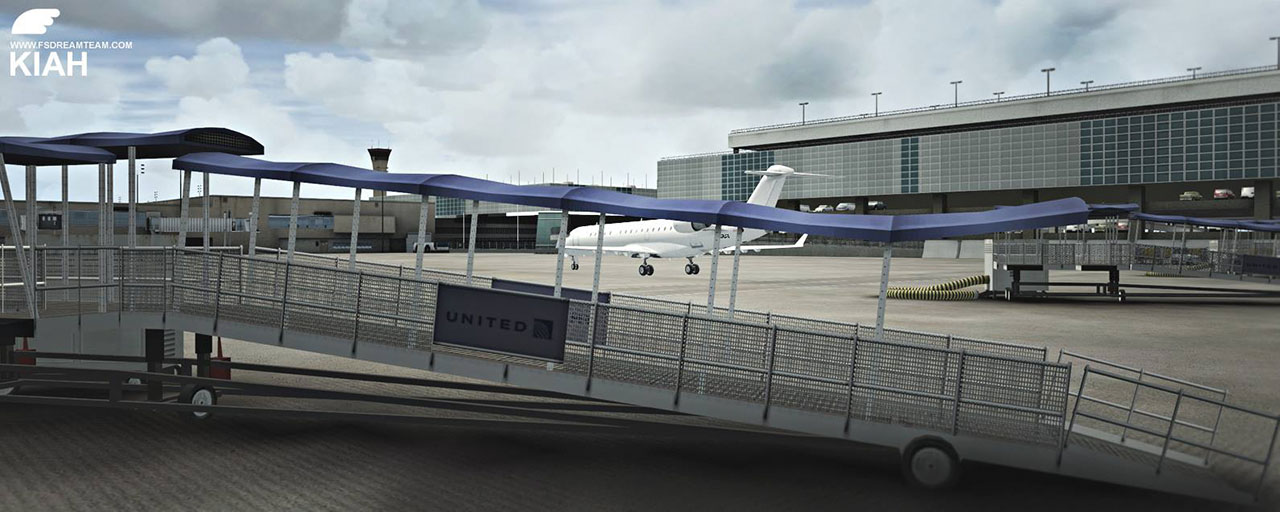 Houston George Bush Intercontinental Airport ( see the Wikipedia article here ) is a scenery developed for Microsoft Flight Simulator X (FSX) and Lochkeed Martin Prepar3D. It's has been created with great attention to visual quality and performance, using the latest available programming techniques.
