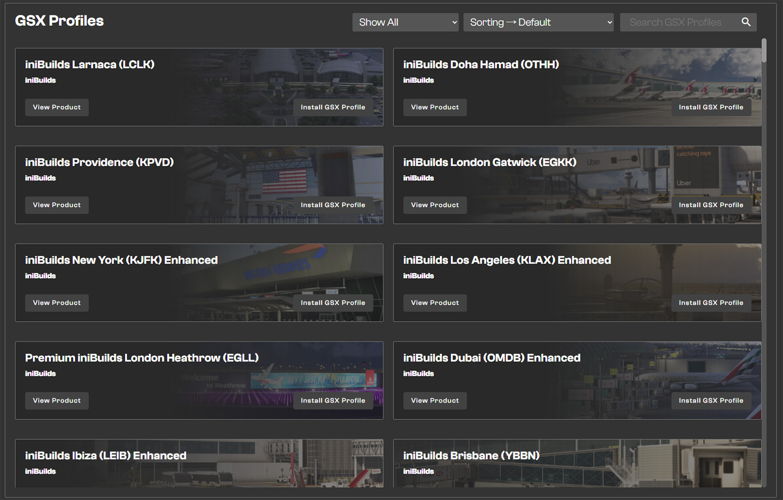 iniBuilds iniManager: Premium GSX profiles are also available through the iniBuilds iniManager application. This platform offers professionally crafted profiles for popular airports with one-click installation directly integrated into the iniManager ecosystem. Perfect for users who prefer a streamlined installation experience with guaranteed quality.