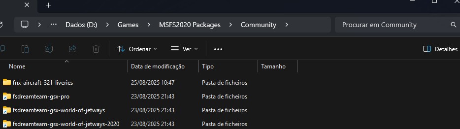 3) Check if the 3 GSX packages in the Community folder are Symbolic links (small arrow on them) and NOT real folders (no arrow). If they are real folders, it's either because you must have copied their folders manually or you restored the Community from a backup, so the restore translated the Symbolic links into real folders, so the simulator is using an outdated copy. If this is the case, REMOVE all GSX folders from the Community, enter the FSDT Installer and click RELINK, to recreate the links as they are supposed to be.