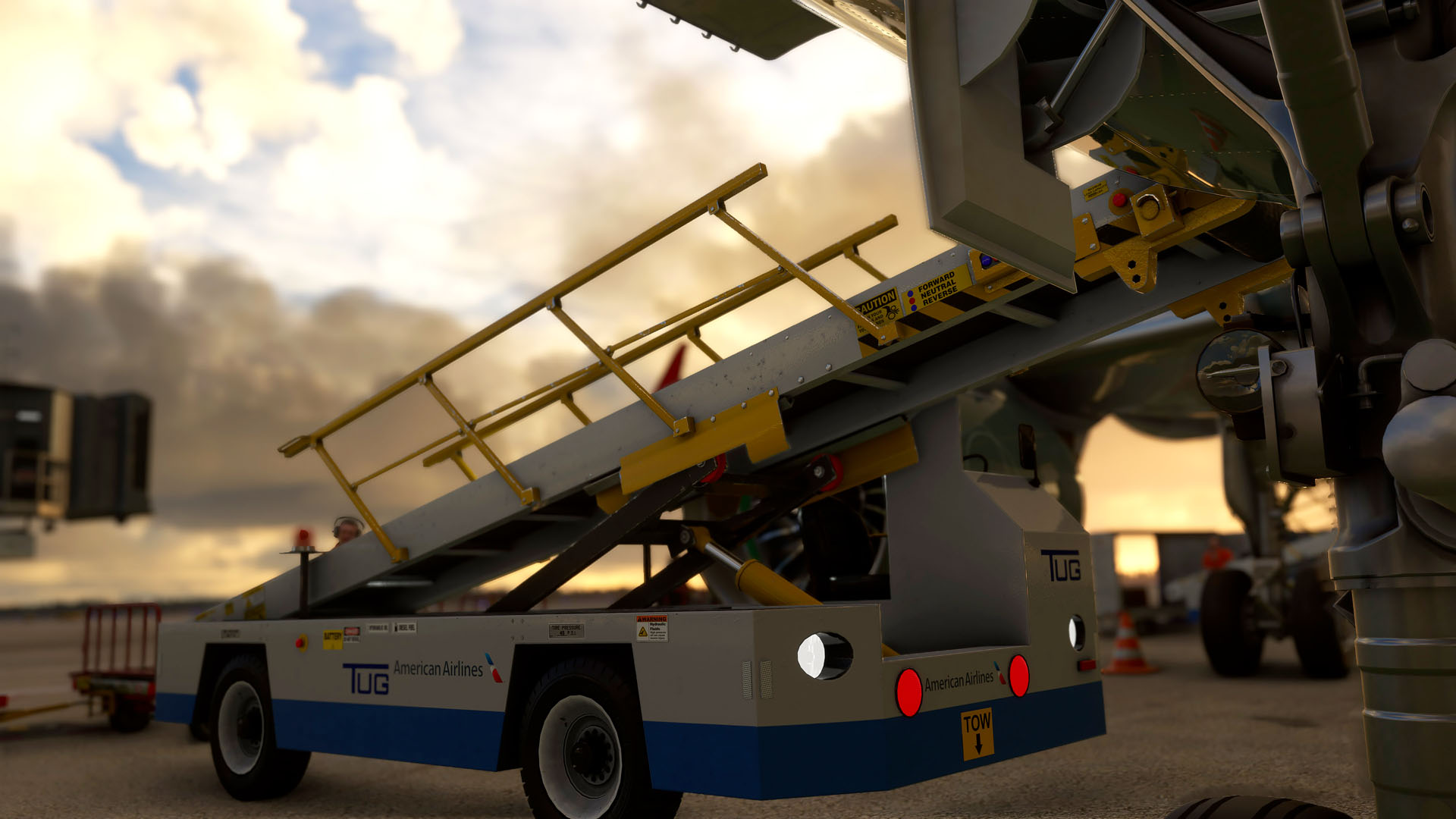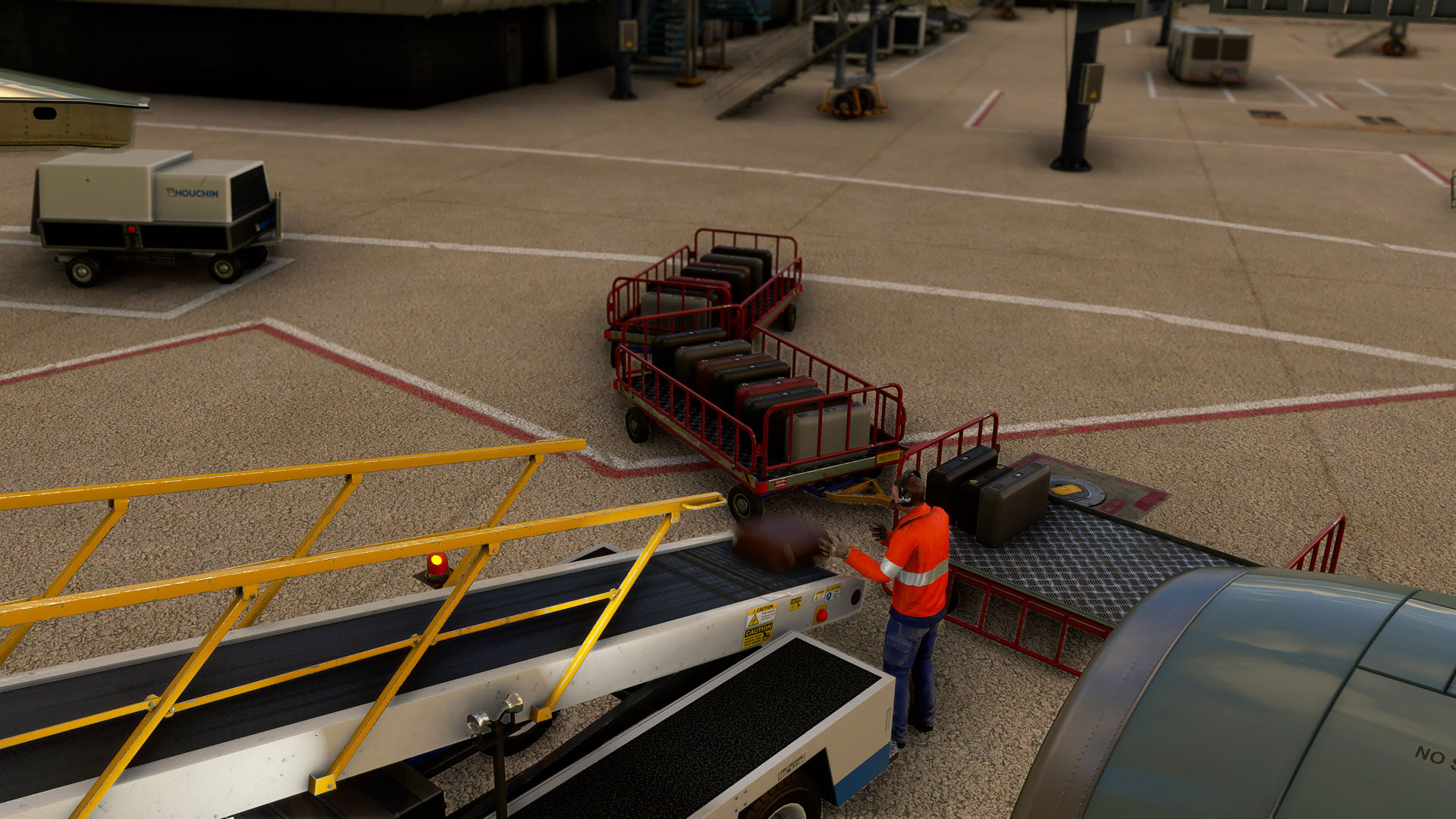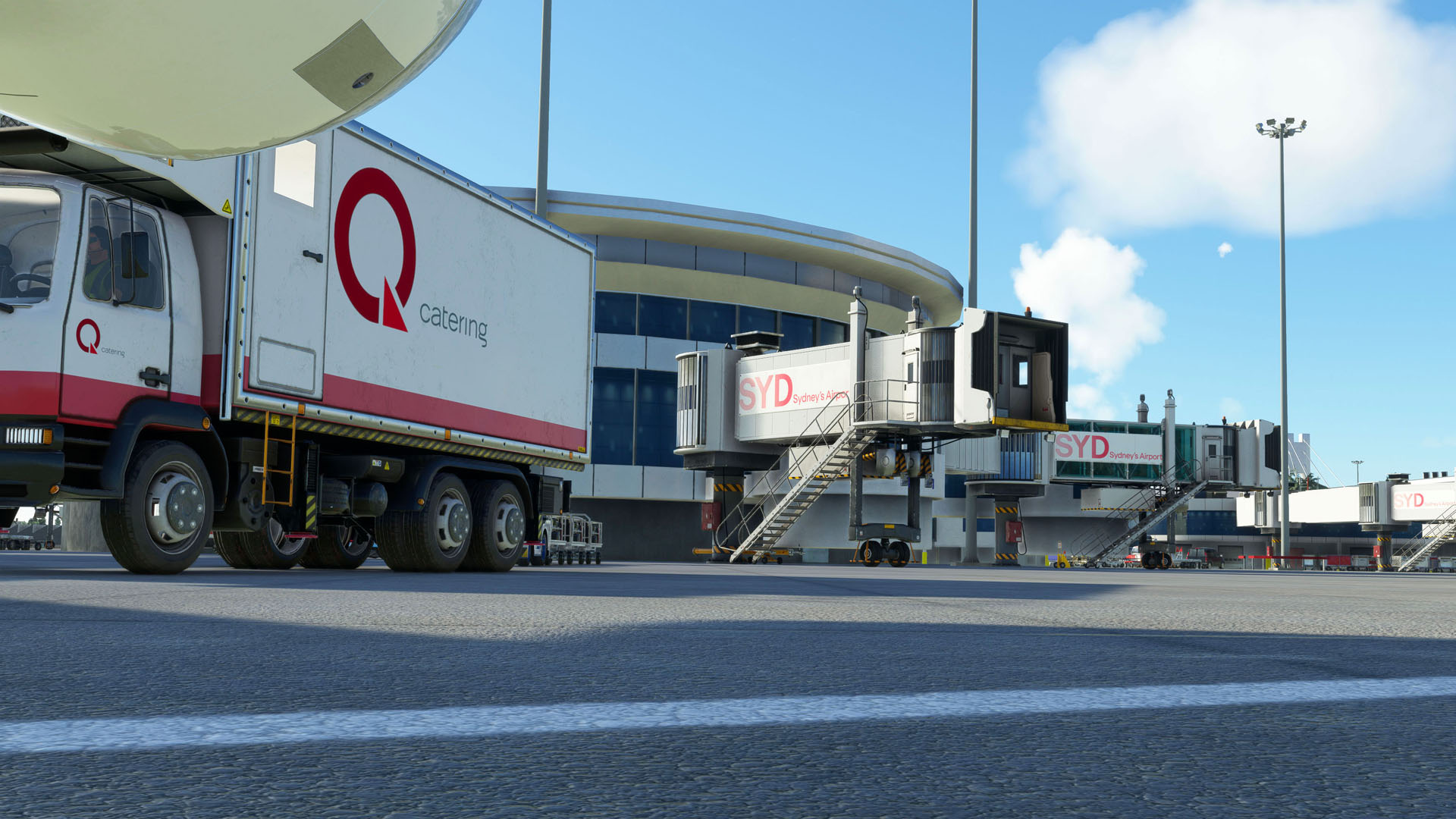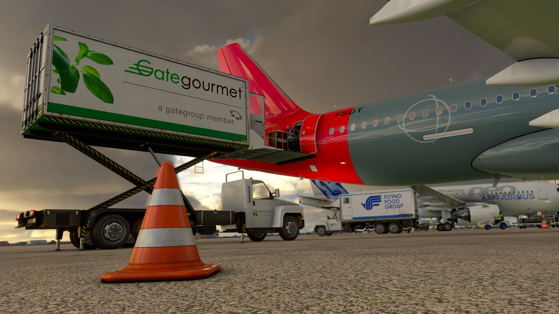 Over 233 real-world catering operators with regional selection, multiple truck types for different aircraft sizes, simultaneous multi-door servicing, animated catering crew, and custom operator assignments per airport. Trucks automatically adjust height for perfect door alignment.