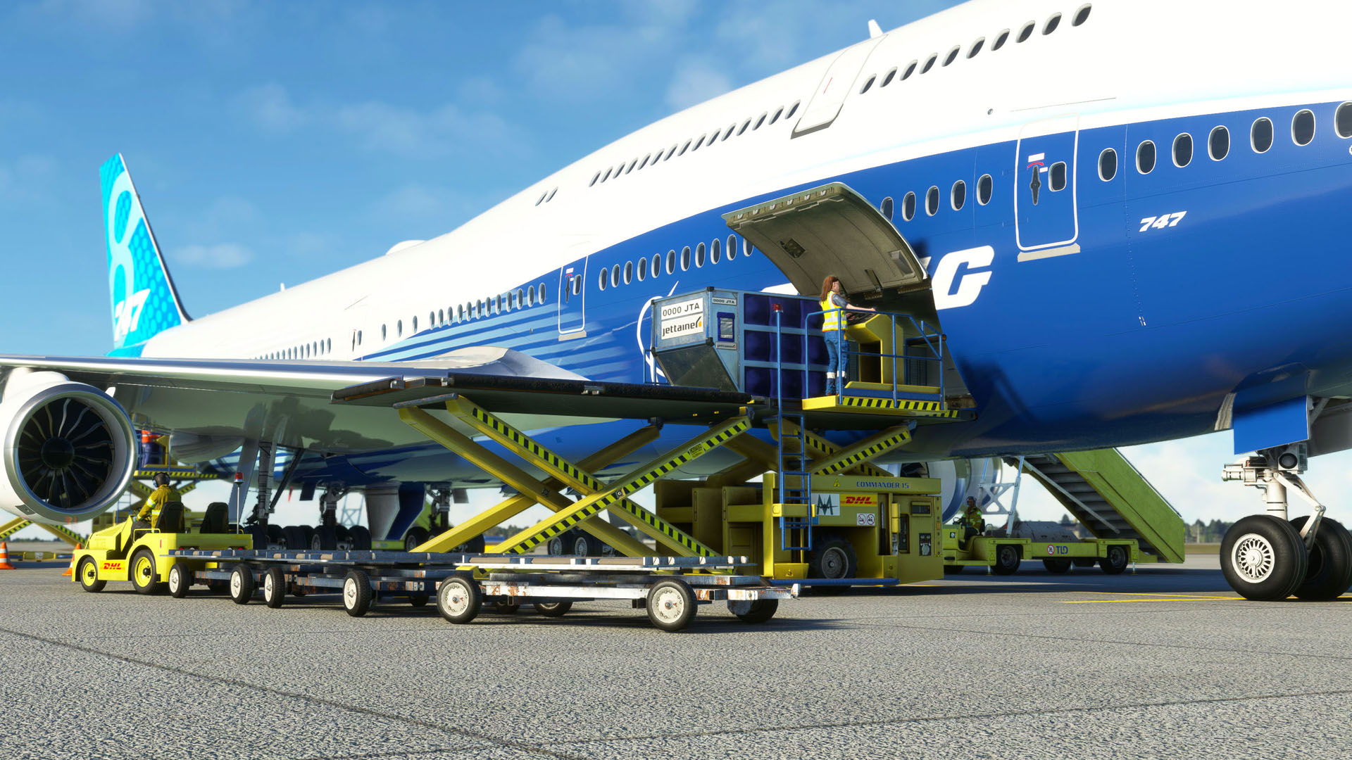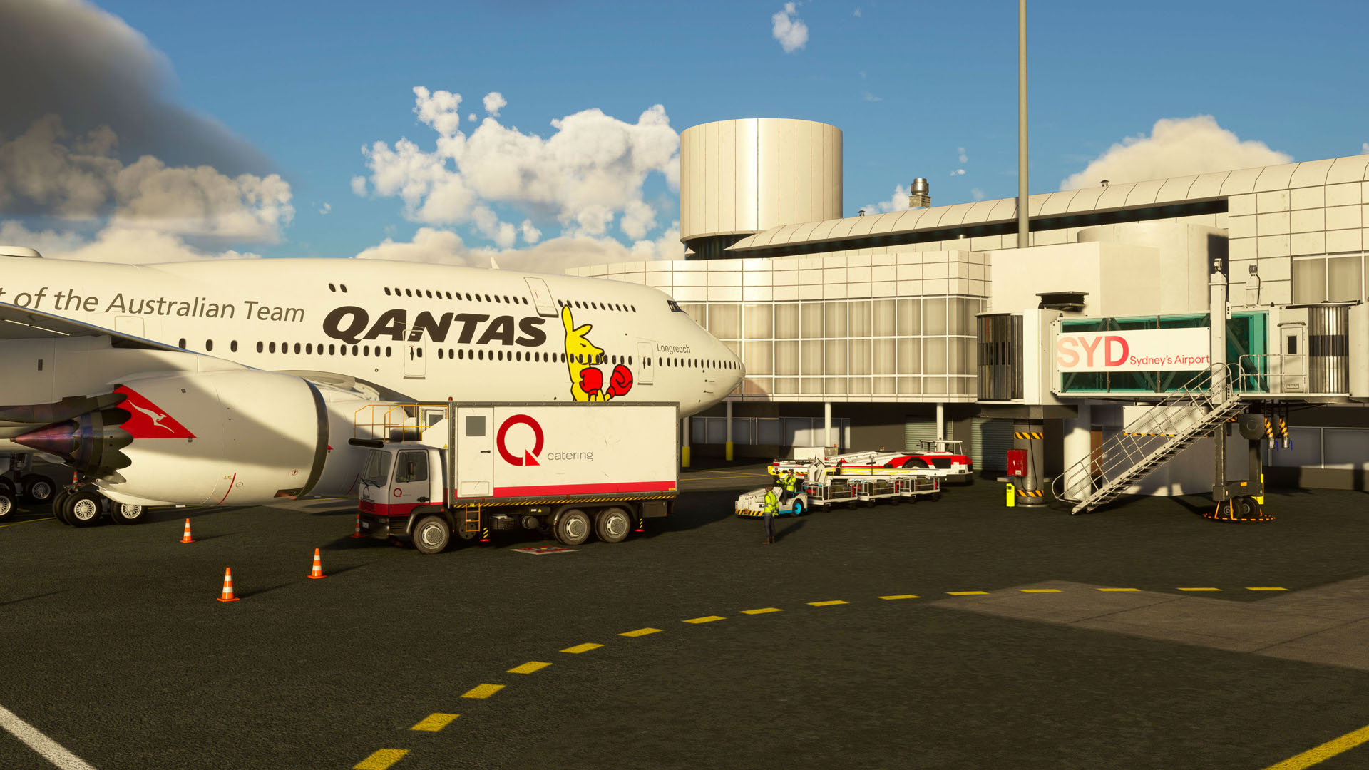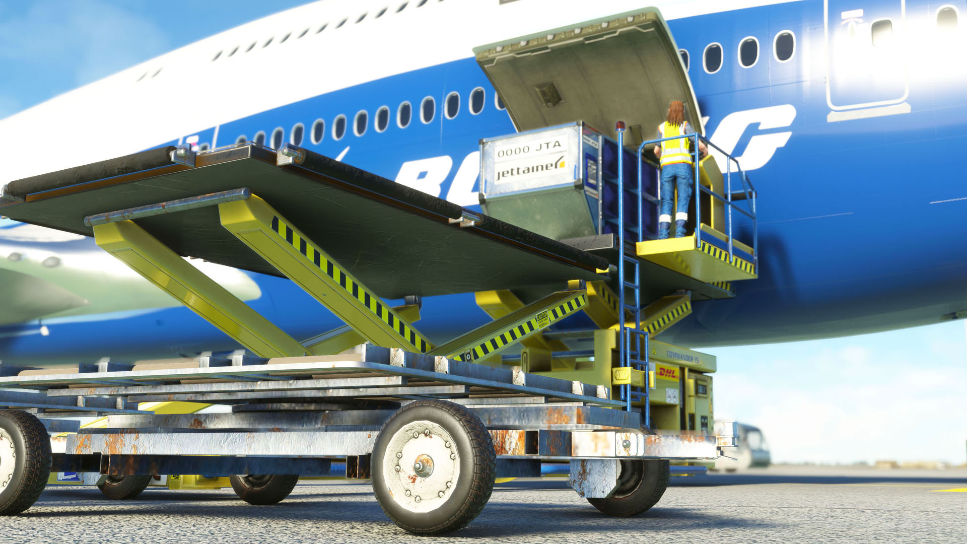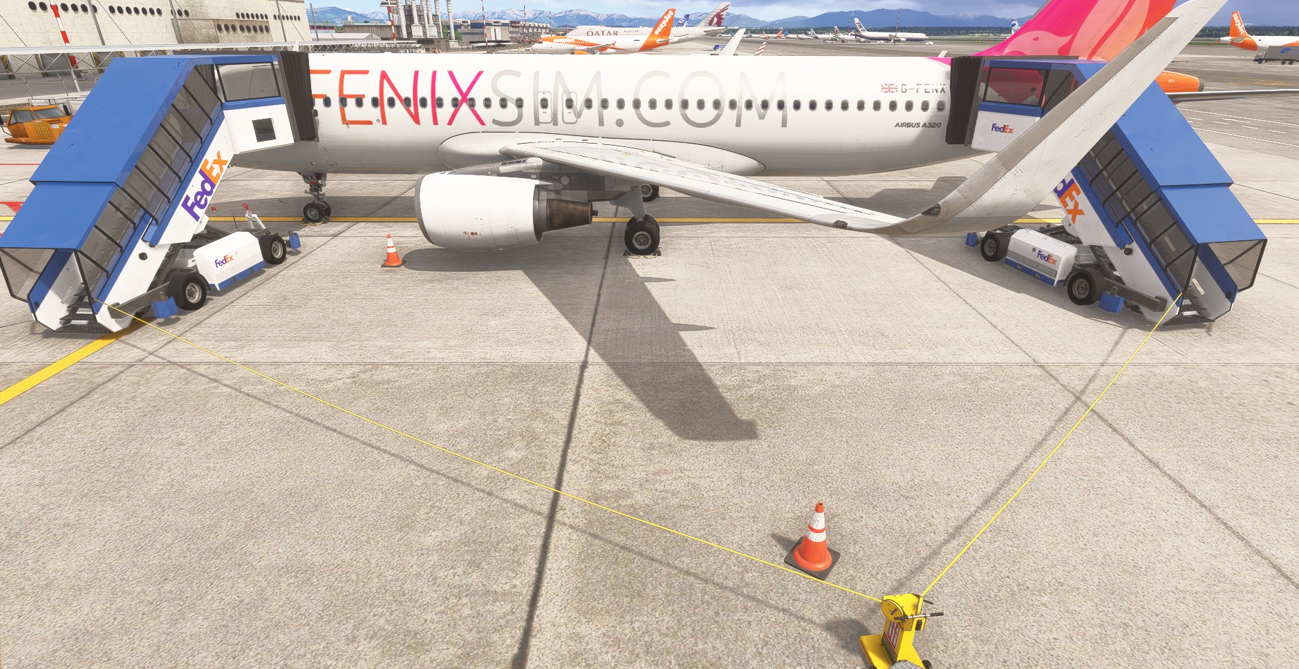 Over 233 real-world catering operators with regional selection, multiple truck types for different aircraft sizes, simultaneous multi-door servicing, animated catering crew, and custom operator assignments per airport. Trucks automatically adjust height for perfect door alignment.
