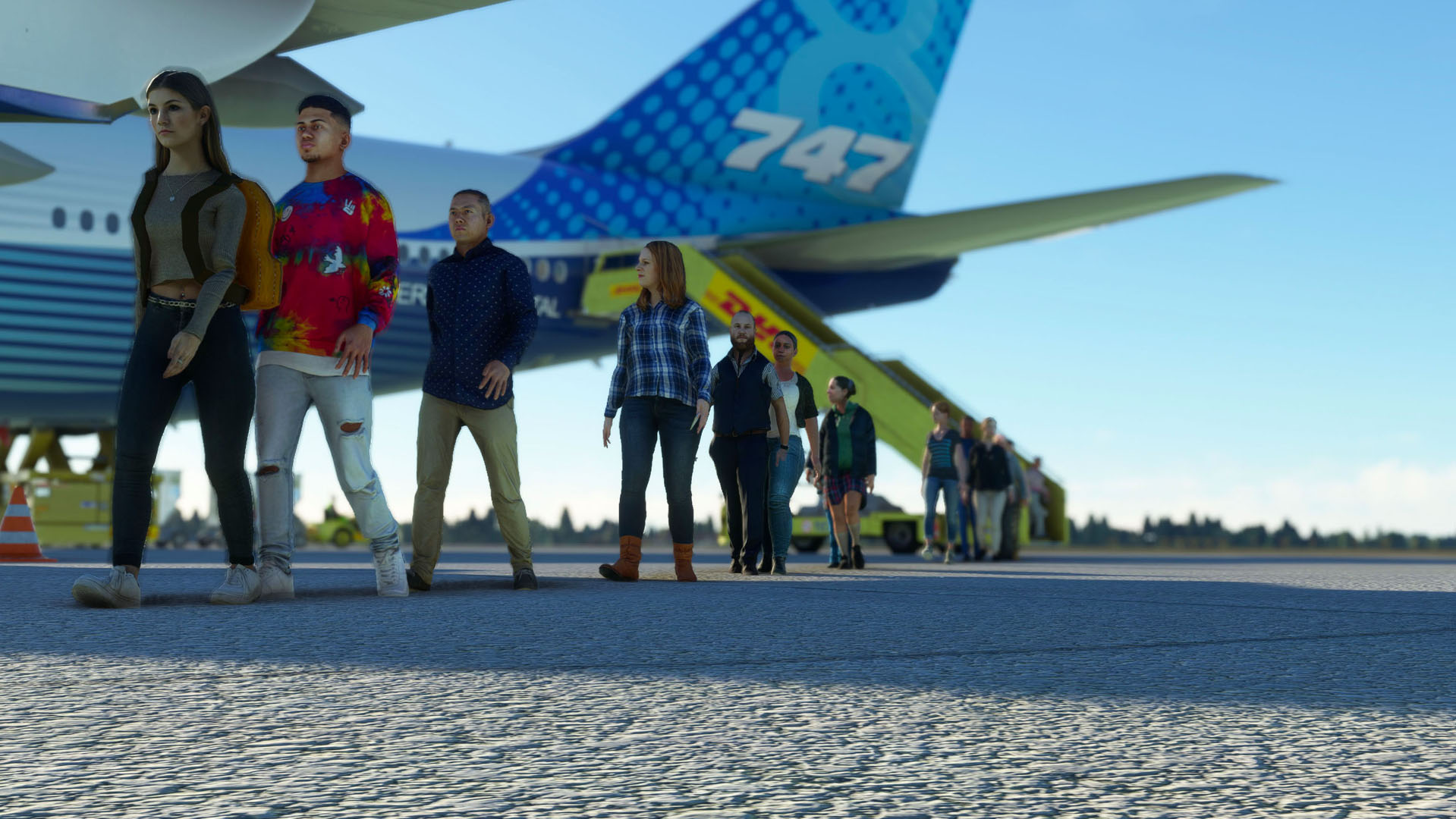 - Crew Simulation: Pilots and flight attendants with proper uniforms