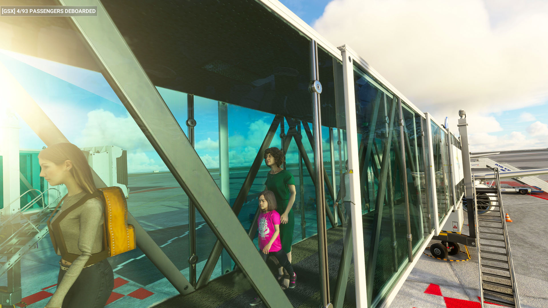 - Seated Passengers: Visible passengers inside the aircraft during boarding/deboarding